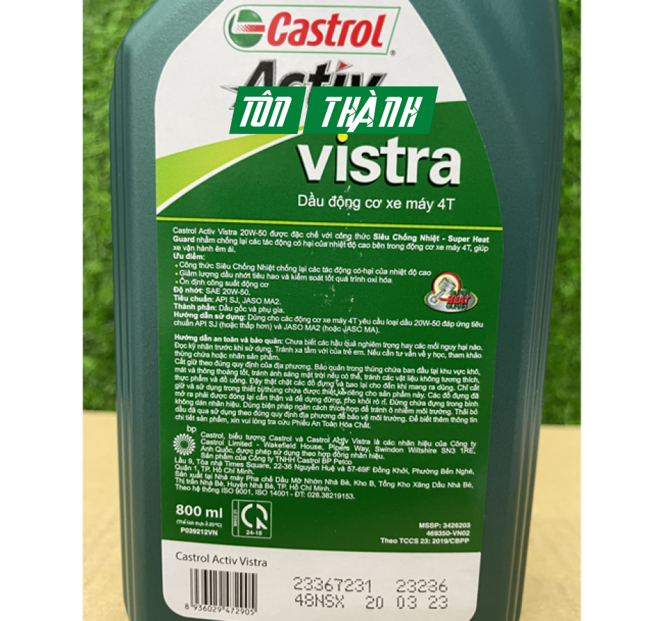- Lựa chọn dung tích phù hợp: Với các dung tích 0.8L và 1.0L, nhớt Castrol Vistra 20W50 có thể sử dụng cho nhiều loại xe số, xe côn phổ biến trên thị trường.